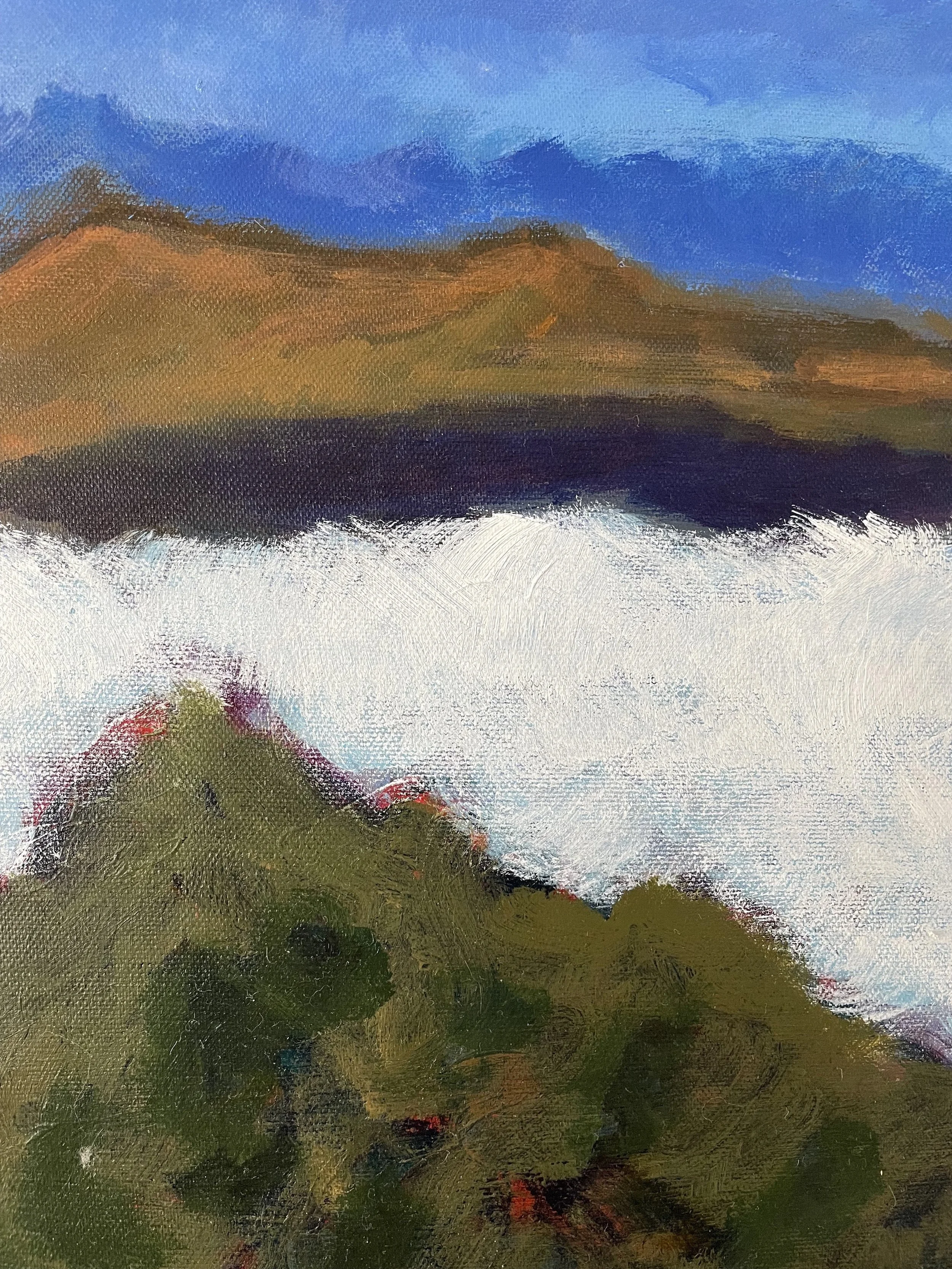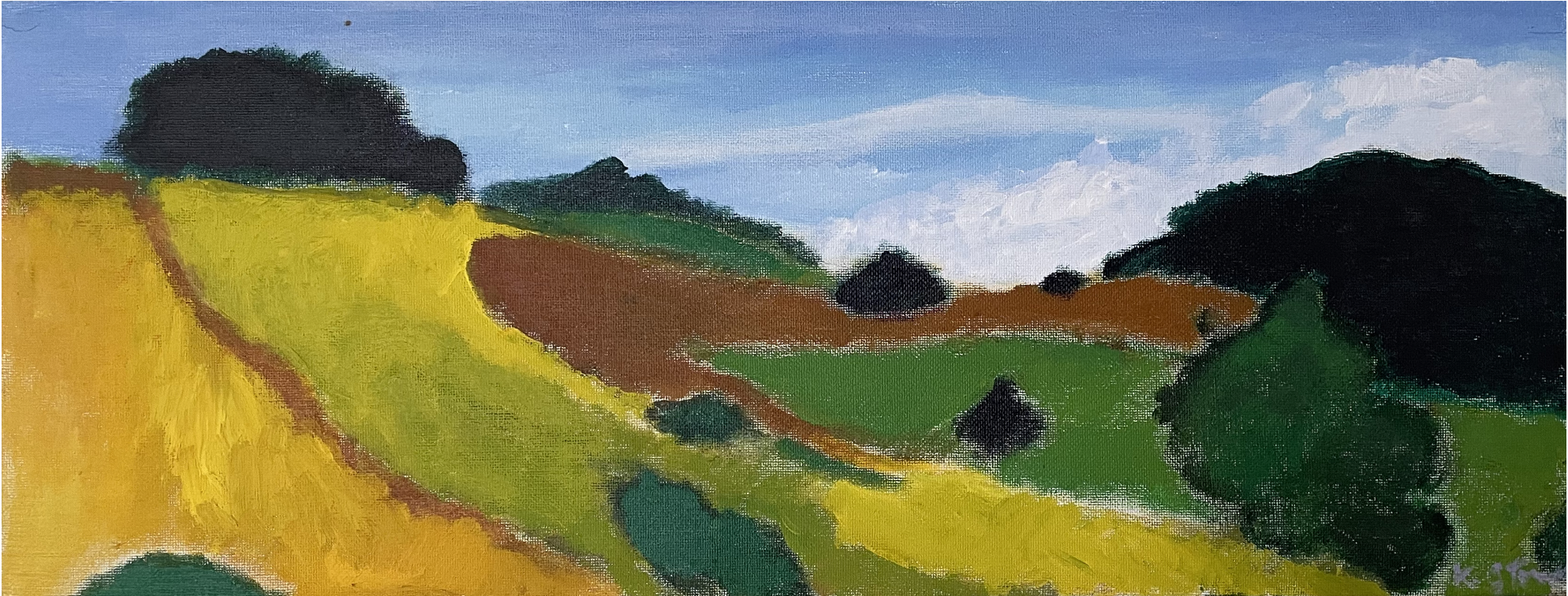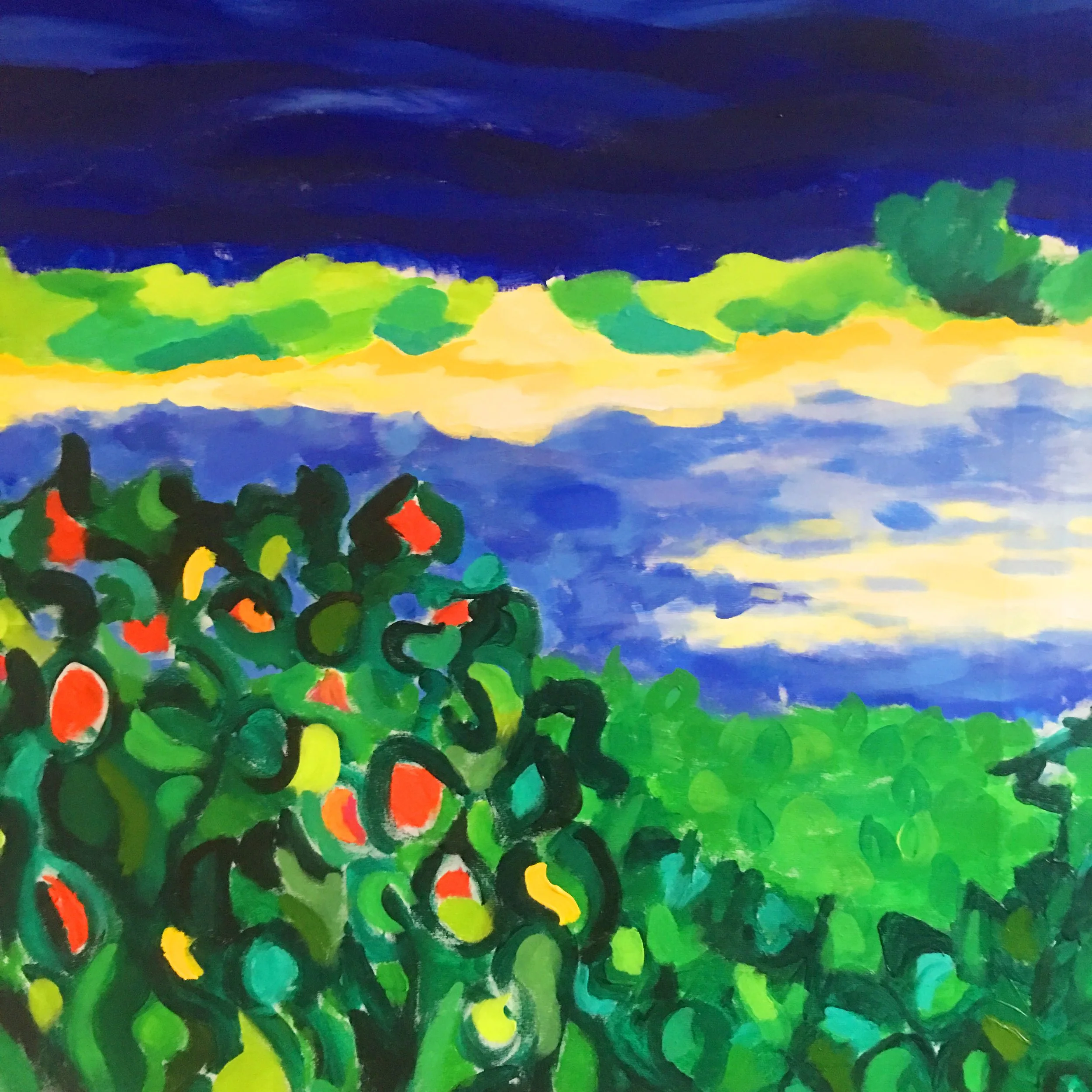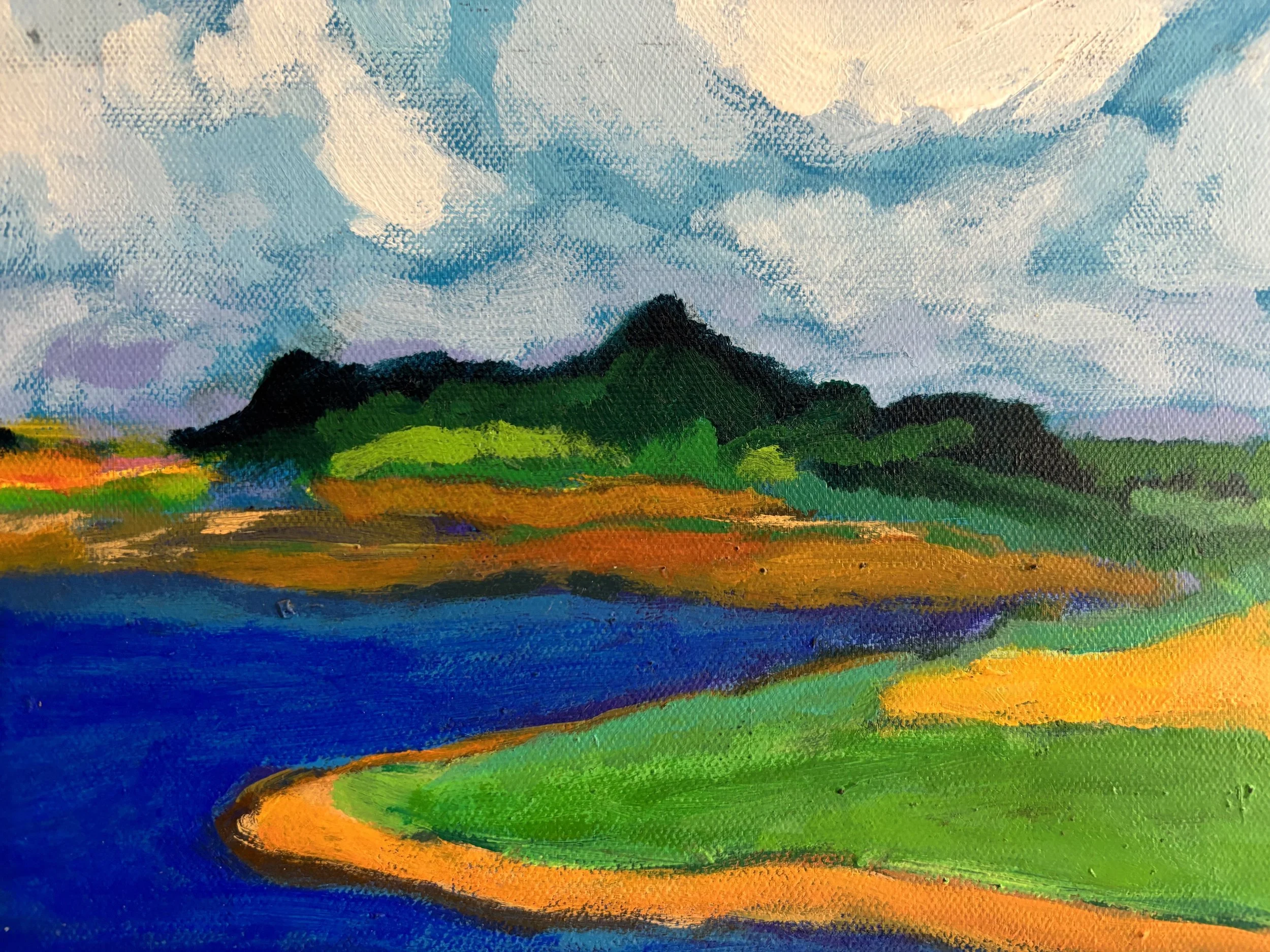 “I believe my sense of color has always been a strength in my painting and other creative work. In college, I painted at a very large scale and am dying to get back to that size. Since then, I have continued to paint landscapes inspired by places I have been but reinterpreted to be bold and whimsy and full of color.”