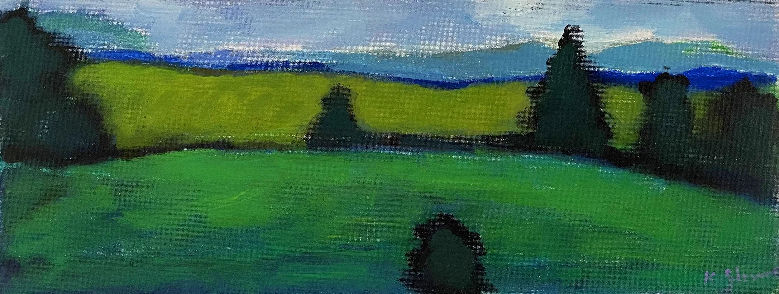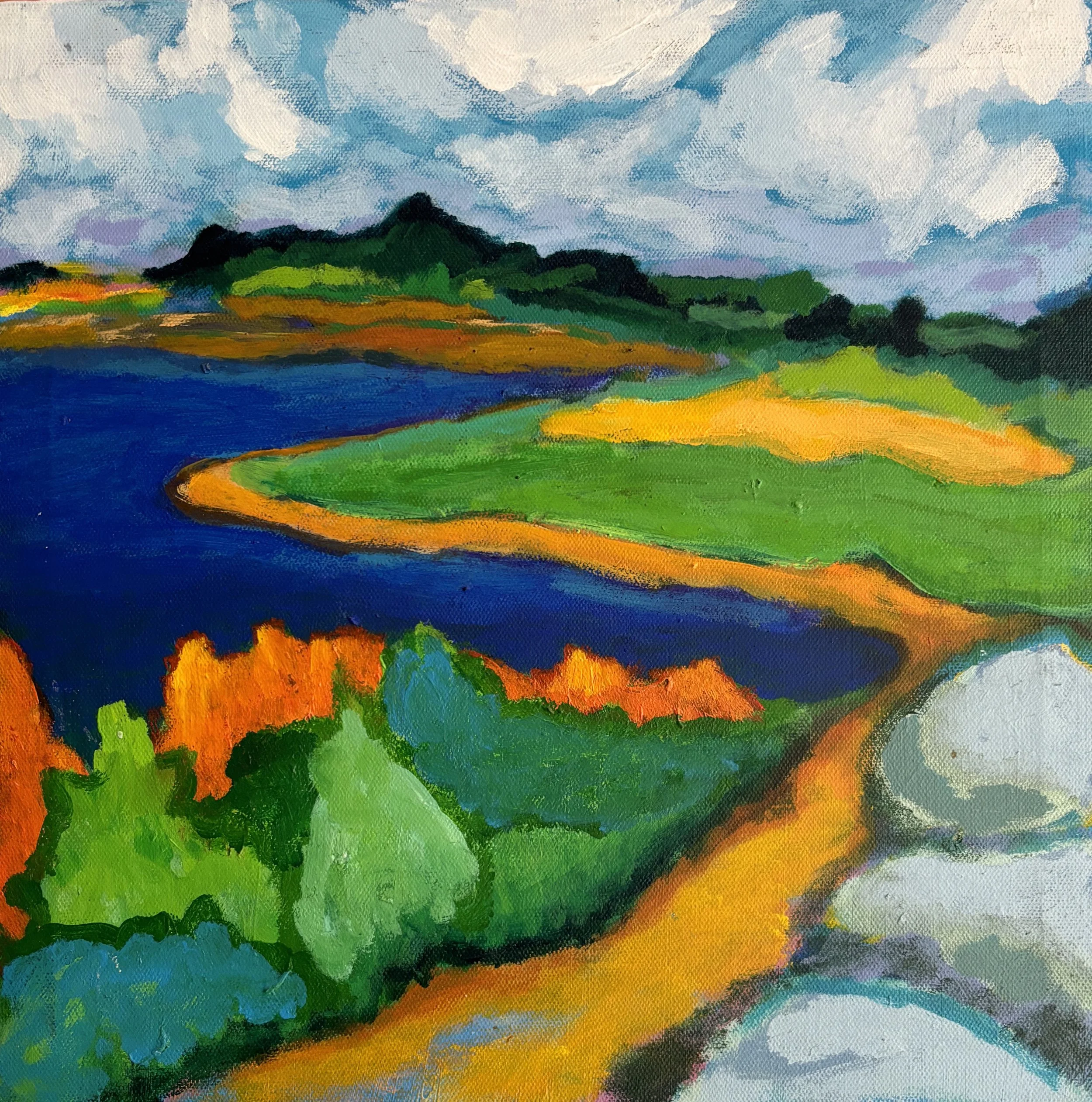 Kim Stewart earned a BFA with a painting concentration at the University of Massachusetts, Amherst. She studied with the incredible colorist, John Roy, student of Josef Albers. Abstract landscapes in acrylic have always been her passion and work she comes back to again and again at different stages of her career. Inspired by real environments, energized by fantastical elements and stunning color, her paintings add a vibrancy and positivity to any space